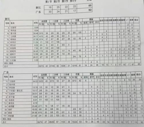 | 11月11日,目前全运会男篮比赛火热进行中,多场精彩对决上演。广东U22男篮迎来首场比赛,对手是浙江U22男篮。比赛开始后广东队率先进入状态,首节领先14分,半场也领先13分。下半场广东队攻防下滑,不过还是稳住了,最终以92-85获胜。此役广东新星黄明依发挥非常一般,仅仅出场4分钟就被弃用,全场数据为2篮板2失误。